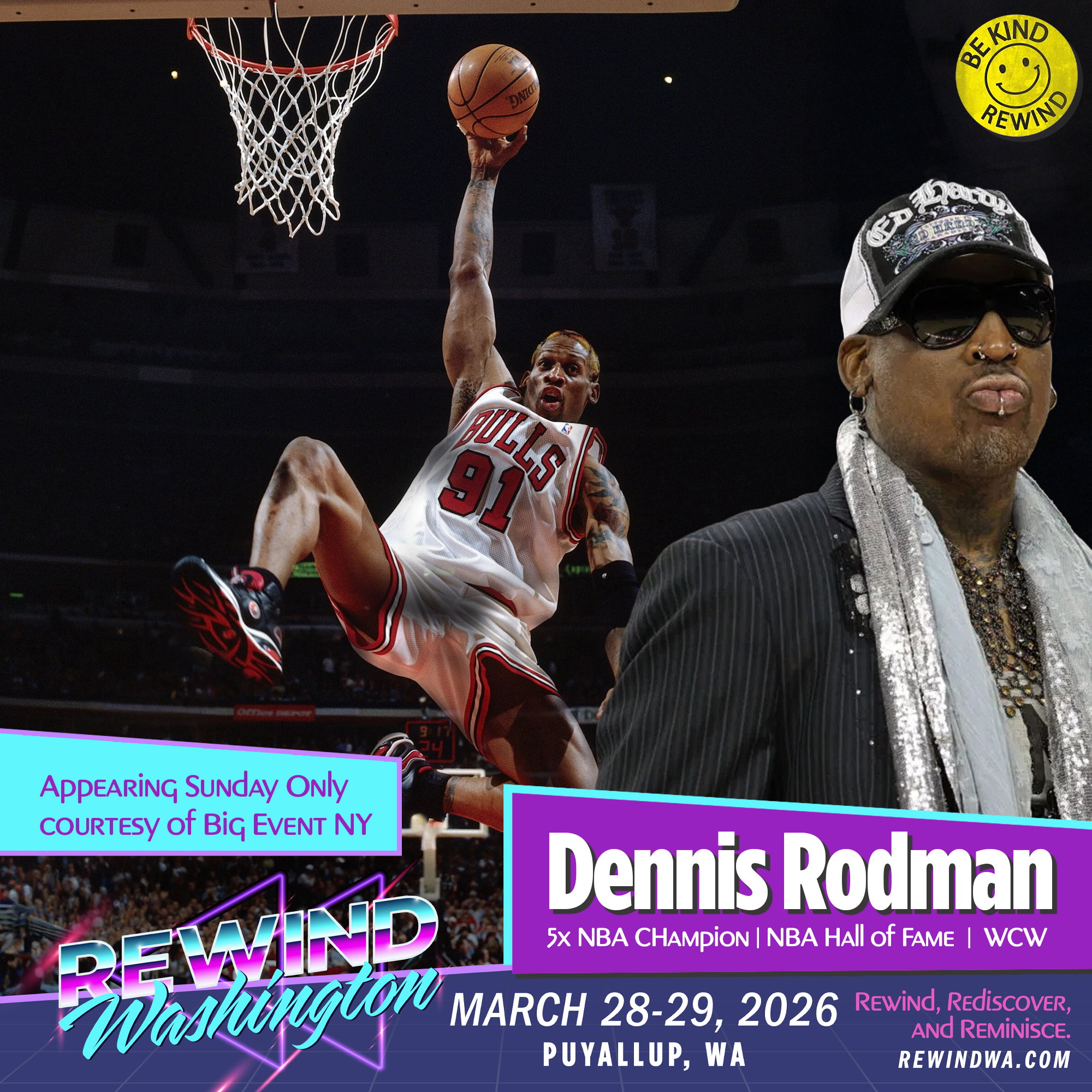 **Dennis Rodman will only be at the show on Sunday, March 29th**