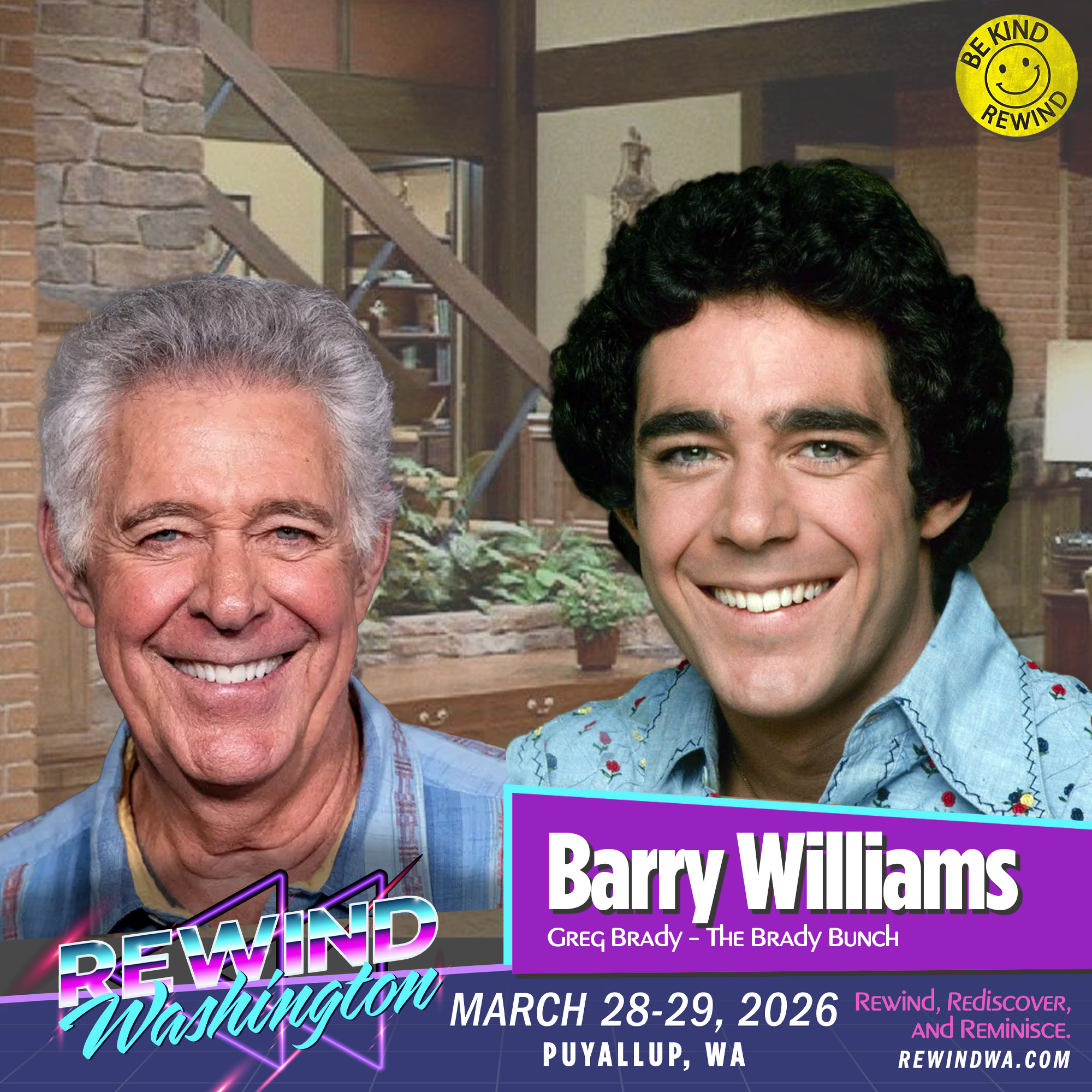 All Guests and Celebrities that are promoted are under contract to appear. If any Celebrity Guest has an unforeseen conflict personally or professionally and can not make the event, Rewind Washington will post a notice on the website and social media pages immediately. No refunds will be given for admission tickets for a Celebrity’s cancellation.